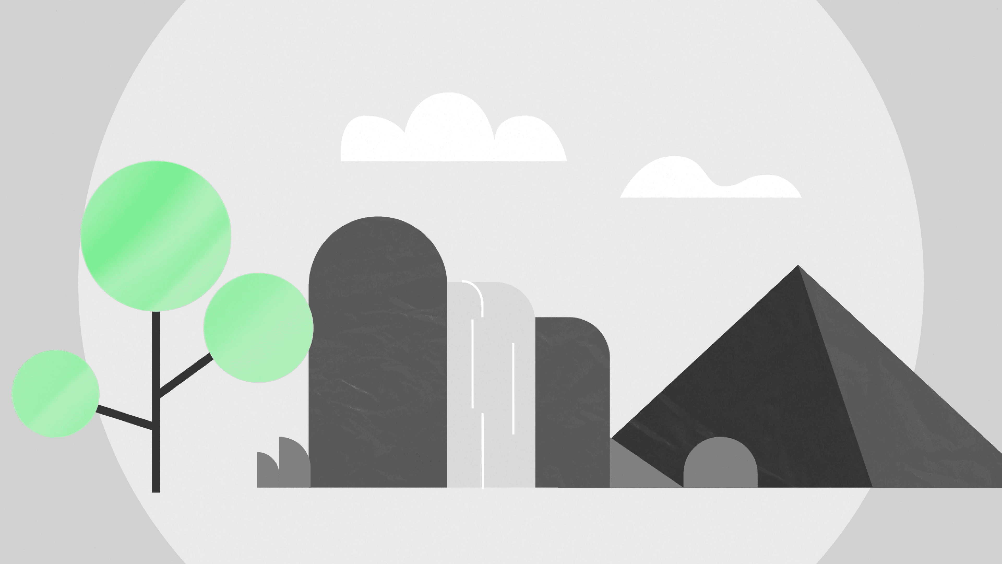 The design features flat 2D elements, stripping down the design to it's most basic form. Sweeping animations and textures are added in to bring life and character back into an otherwise dull style.